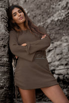 Deze Yulia knitted dress van MOOST Wanted in het Dark Taupe ademt Ibiza vibes. Heeft een open rug, touwtjes in de nek om te strikken, flair mouw, touwtjes om de jurk te plooien aa Laat de zomer maar komen – jij bent er klaar voor.
