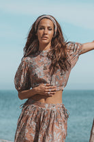 Maak kennis met onze FLORA PRINTED TOP – een dromerige essential voor de bohemien in hart en nieren. Deze top straalt uit met boeiende bloemenprints en is gemaakt van delicate stof en belooft deze zomer de spotlight te stelen. Voor een echt betoverend ensemble combineer je hem met onze FLORA PRINTED ROK en maak je look compleet met de bijpassende FLORA SJAAL. Ontworpen met een luchtige stof, een ronde hoge halslijn en charmante lichte pofmouwen met elastische manchetten, biedt het zowel comfort als stijl. Bind hem in de nek of op de rug voor extra flair. Omarm moeiteloze boho-chique elegantie met dit veelzijdige en betoverende stuk.