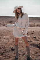 Product gegevens: Heeft een ronde hooggesloten hals, is fijn gebreid, heeft opengewerkte details, inclusief onderjurkje